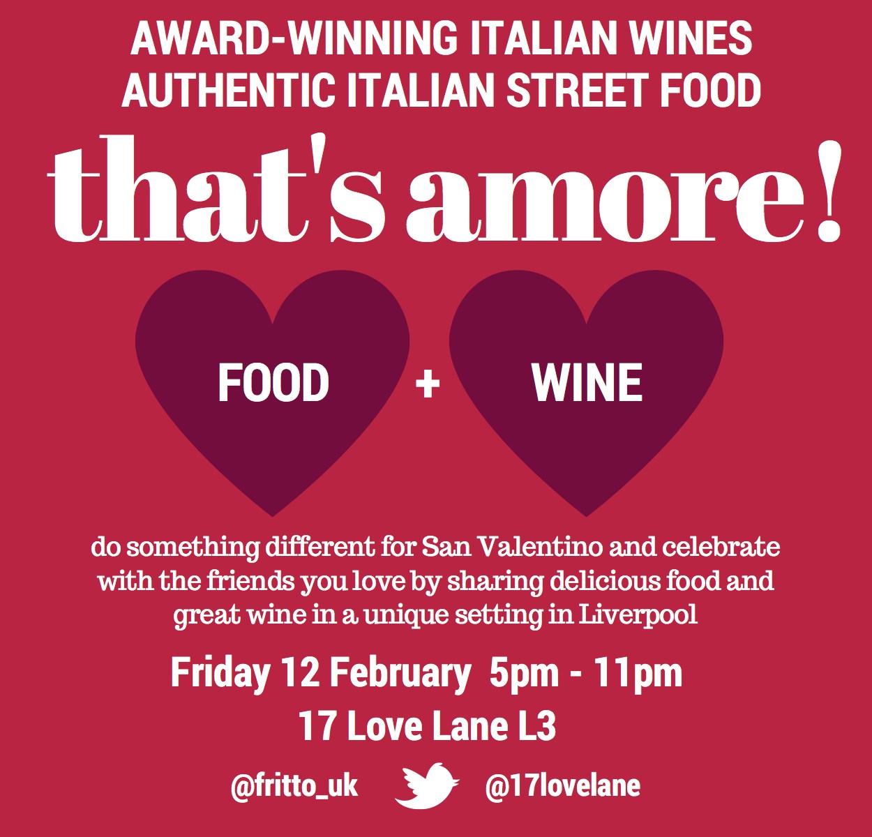 This year celebrate Valentine’s Day in a different way. If you also are a food & drink lover, join us for an authentic Italian experience at Love Lambrusco. Italian street food & Italian wines ….WHAT A COMBO!