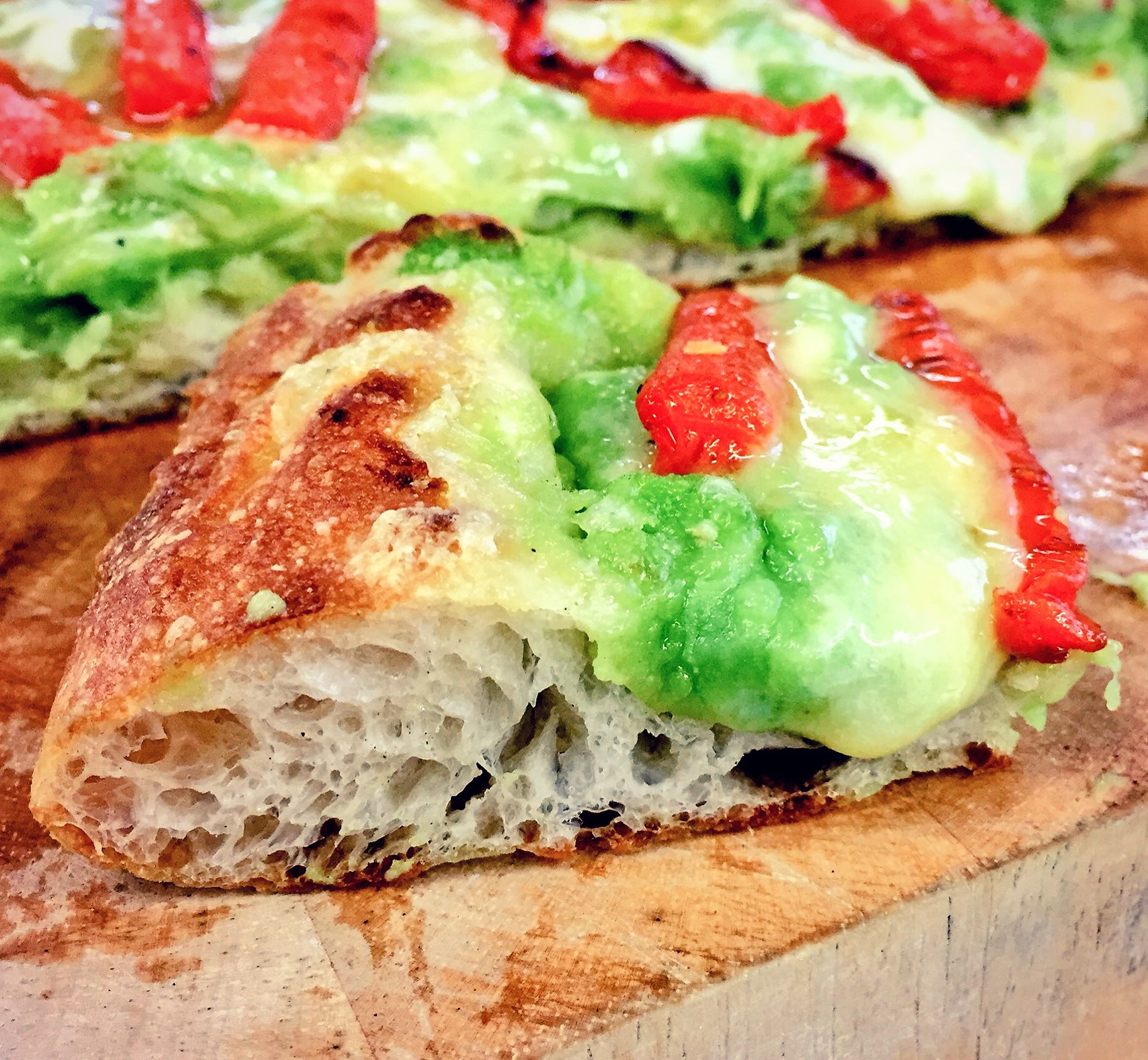 This is our contribution for St. Patrick Day back in March. We made two very special pizza…the first one below is called Paddy’s Pizza and it represents the Irish flag on a Pizza..why not? So we got the bright green from mushy peas (cooked with bacon, butter and parmesan), the white from vintage Irish Cheddar and the orange from honey-glazed carrots. It was a crazy experiment but super delicious!