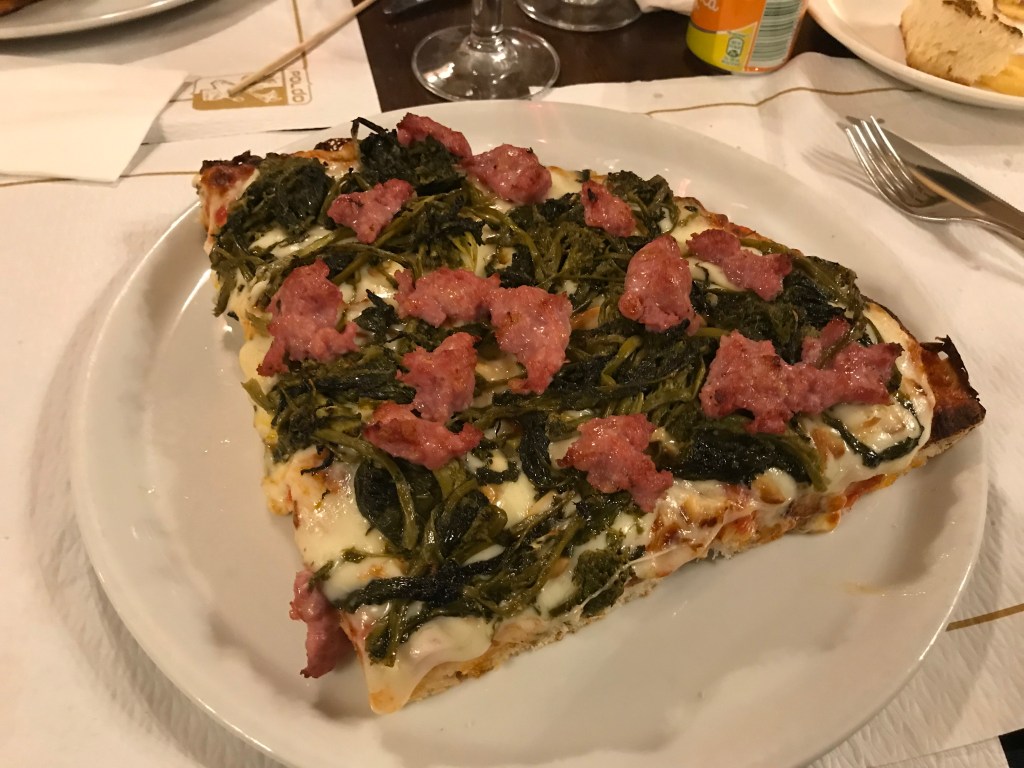 The best pizza in the world for us isn’t in Naples. Just outside Milan there is a small village Cormano where Luca, our Italian baker is from, famous for two things: the daily massive queue on the motorway passing by Cormano and for a local PIZZA LEGEND called Poldo. Every time we go back to see my family I have to pay a visit to this pizzeria! They offer a wide range of pizzas, but they all have in common very generous and amazing quality toppings. It’s a deep-pan style pizza served by the slice (2 options – normal or large), characterised by a super soft dough and a crunchy crust. Pizzas there are all amazing , but my absolute favourite is the salsiccia & friarelli. The recipe is top secret and it’s all managed by two brothers who constantly work in the restaurant very hard, despite their success. If you go to Milan it’s worth a visit there.
