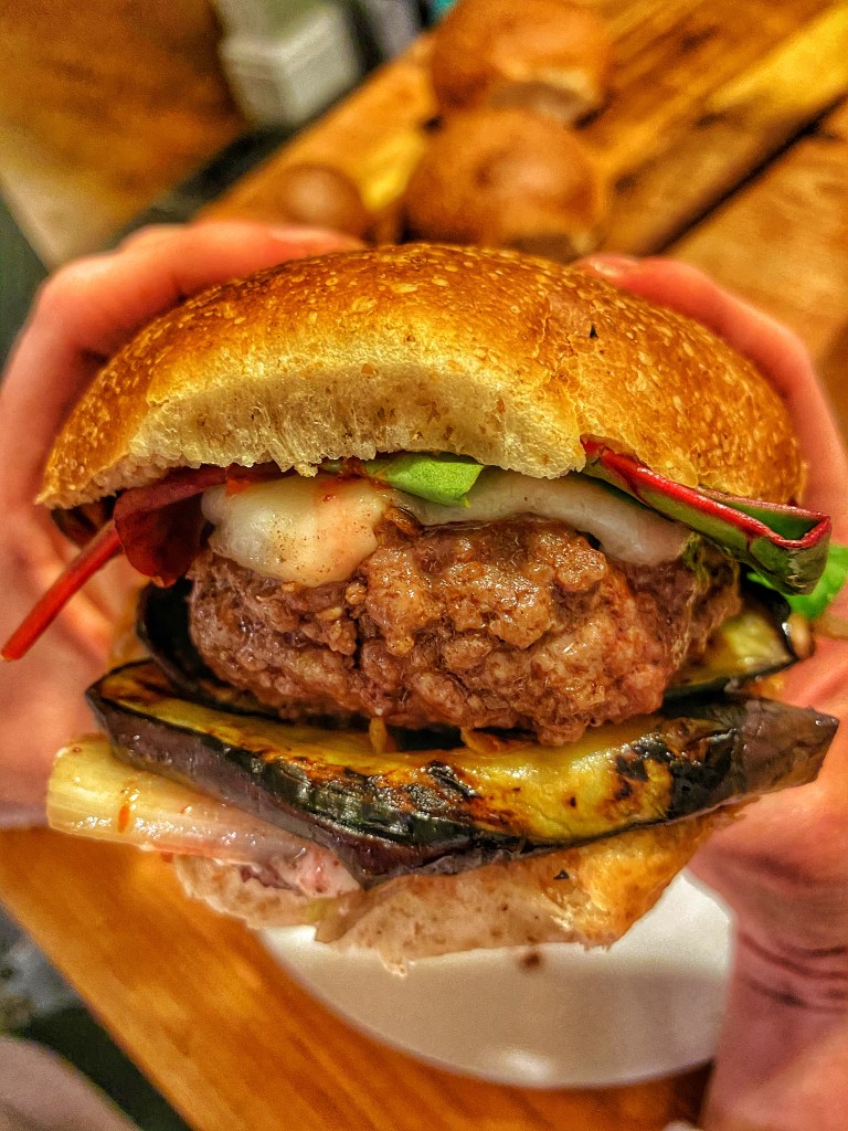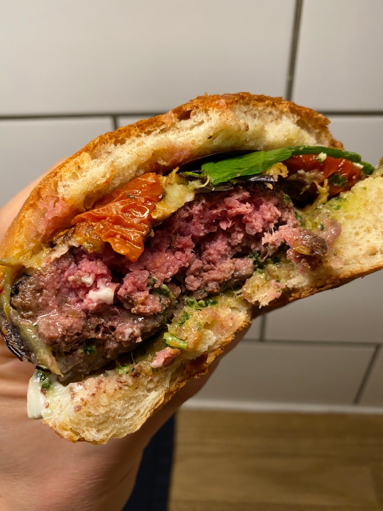 When Fritto doesn’t do events it’s the perfect opportunity to be creative in the kitchen and play around with new recipes. As we love sharing our experiments with you, here is a very easy recipe to make outstanding BURGER BUNS at home. We filled ours with homemade lemon mayo & pesto, lamb/beef patty, Manchego cheese, grilled aubergine, sun-dried tomato, salad leaves.