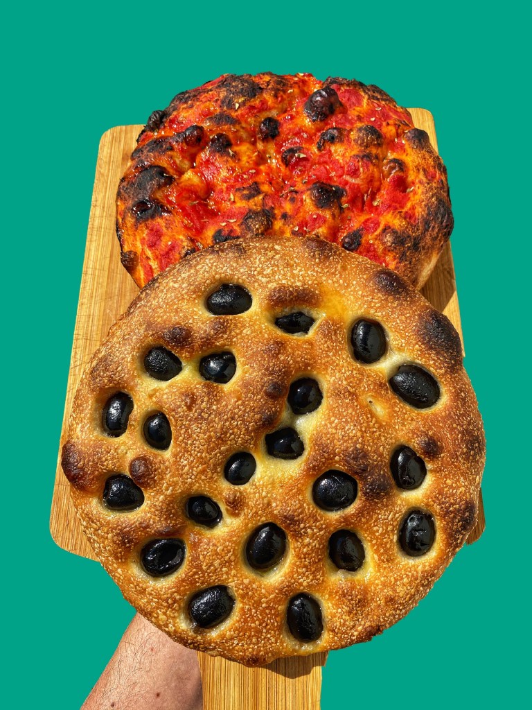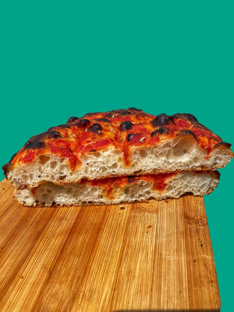 Make the dough > let it rest for 45 mins > divide it into balls > place them in oiled trays > rest for 1.5 hours > stretch the dough until the edges > add seasoning or toppings > let it prove for a further 2 hours > bake it for 10 minutes at 250 degrees!