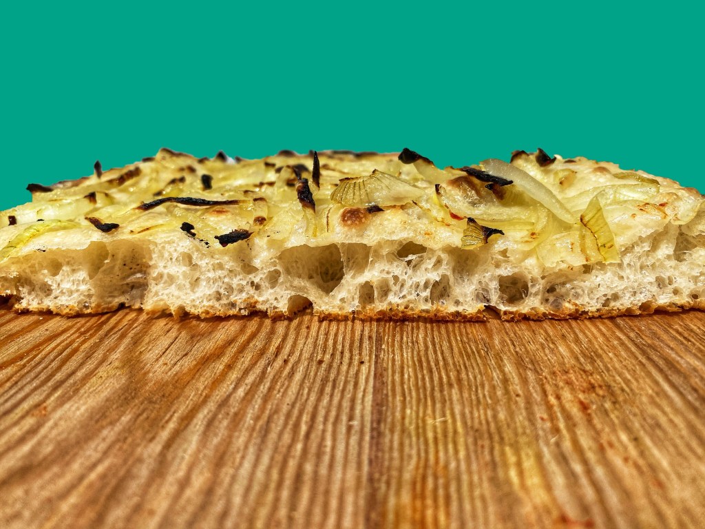 Do you have sometimes a sudden desire of pizza (homemade), but you haven’t planned to make it too much in advanced? With this recipe you only need five hours from kneading to eating. This type of dough, with a spongy crumb & crunchy crust is perfect for amazing focaccia too. You don’t even need fancy toppings. We have used for ours very simple and affordable ingredients: onions, black olives or just tomato sauce. DELICIOUS!