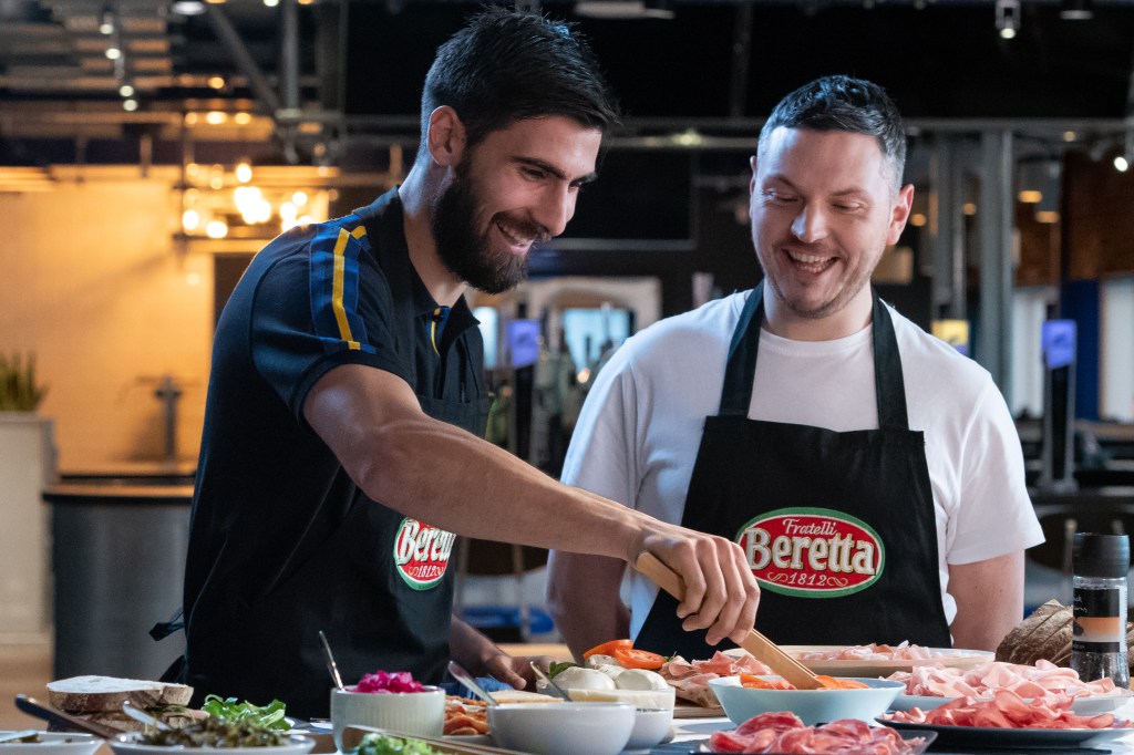 Luca, together with some of the EVERTON football players – Andres Gomes, Theo Walcott and Michael Keane had a lot of fun challenging each other for the BEST SANDWICH ever! Our Italian baker brought with him a few types of artisan bread and focaccia, fancy cheeses, posh pestos, and other exciting Italian ingredients perfect to pair with the incredible selection of Italian meats, such as Bresaola, Mortadella, Porchetta, Prosciutto Crudo & Cotto – provided by Fratelli Beretta.